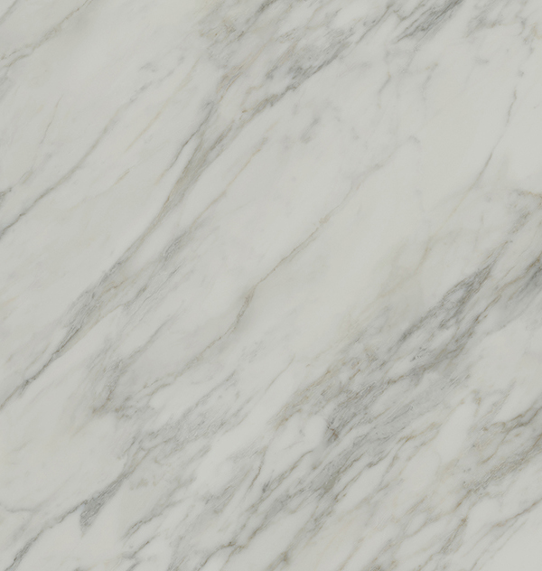 A soft ivory-white base subdued by a striking flow of grey veins that dissolve into the stone, accentuated by muted green and yellow crystalline layers for an authentic mineral effect, capturing the clouded translucency of marble, in a Honed finish