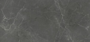Dark greys blend with warm brown accents, in an intricate array heightened by tiny flecks and oxidisation effects that capture the aesthetic impurities of natural stone, while white organic veins mixed with finer chalky lines give direction and dramatic impact, in a Honed finish.