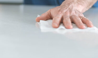 Check each cleaning product on an inconspicuous area first to ensure it doesn’t damage the surface.
